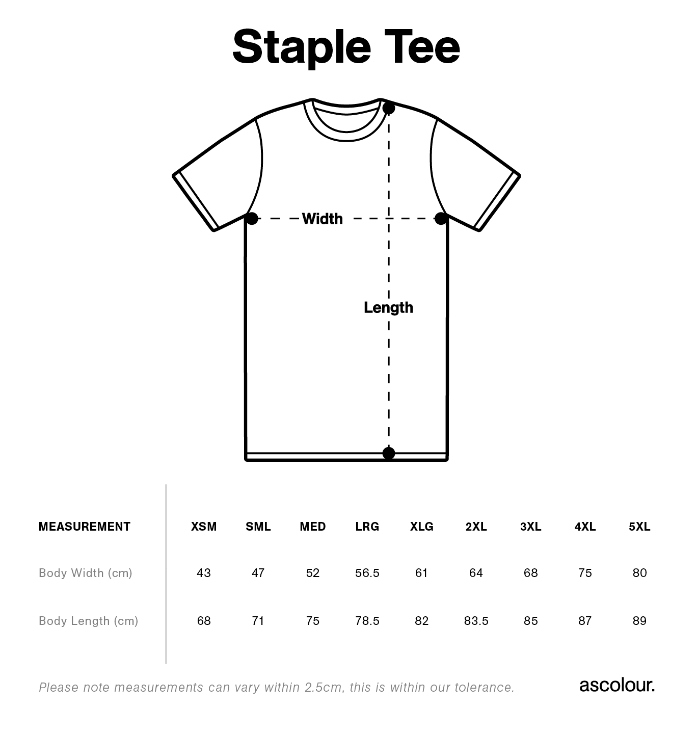 Width measurements are from seam to seam, under the armpit, with the garment lying flat.